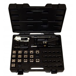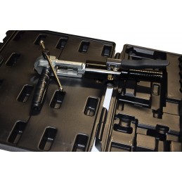 Zestaw zawiera komplet narzędzi oraz adapterów o różnych rozmiarach, dzięki czemu prasa sprawdzi się zarówno w warsztatach samochodowych, jak i przy pracach serwisowych i naprawczych.