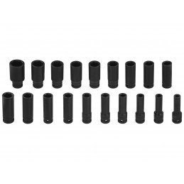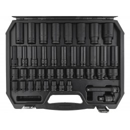 Profesjonalny zestaw nasadek udarowych 1/2" składający się z 40 elementów. Dzięki szerokiemu zakresowi rozmiarów oraz solidnemu wykonaniu z wytrzymałej stali chromowo-molibdenowej (CrMo SCM-440), zestaw doskonale sprawdzi się zarówno w warsztatach mechanicznych, jak i mobilnych serwisach.