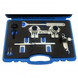 Profesjonalny zestaw specjalistycznych narzędzi serwisowych przeznaczony do ustawiania i regulacji rozrządu, a także do montażu dolnej osłony paska rozrządu wraz z uszczelniaczem wału korbowego. Zestaw umożliwia precyzyjne pozycjonowanie elementów układu rozrządu zgodnie z wymaganiami producenta.